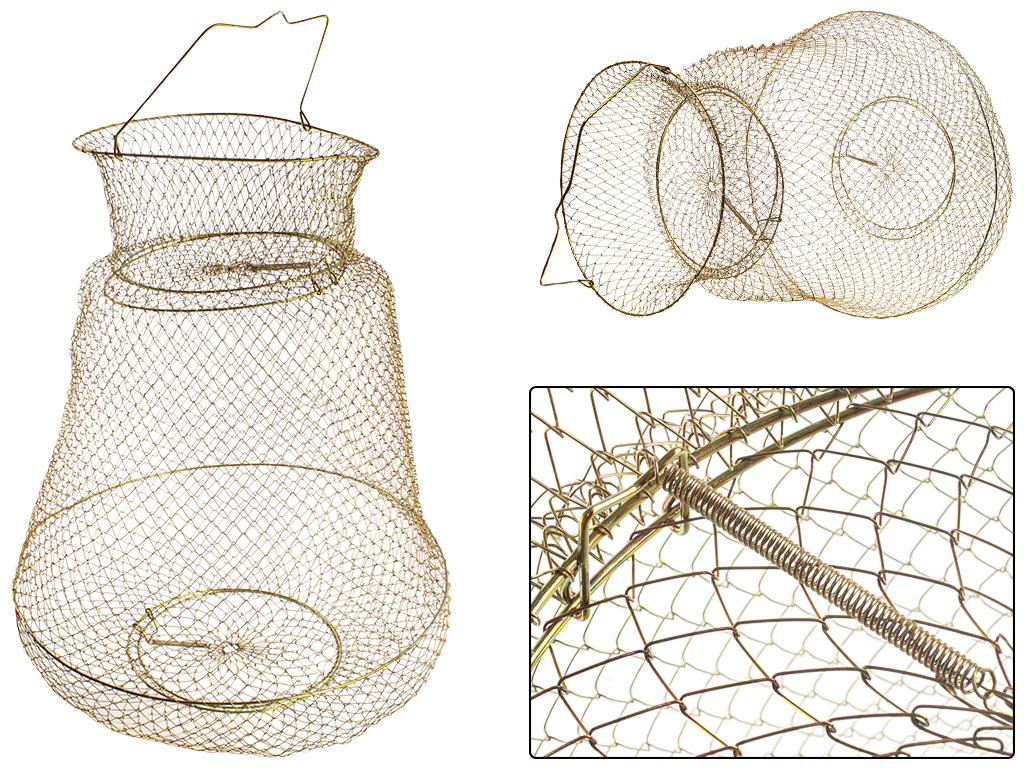 Садок железный 40см. Размеры садка: 45х45х52см; высота садка 52см; диаметр верхнего и нижнего отверстия 20см; диаметр дна 45см; диаметр верха 27см; высота секции 39см; высота горла 13см; высота ручки 12см. Размер для транспортировки: 45,5х45,5х7см. Количество секций: 1. Форма головы: круглая. Приемное отверстие оборудовано защитной крышкой, автоматически закрывающейся пружиной. Низ садка имеет выпускное отверстие для удобной выемки рыбы с крышкой открывающейся во внутрь. Оснащен металлической ручкой для удобства при транспортировке.