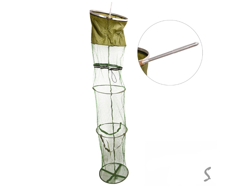 Этот садок создан для рыболовов, которые не привыкли ограничиваться мелочью и ценят простор для настоящего трофейного улова. При длине 250 см и диаметре 40 см он вмещает крупную рыбу без риска повредить чешую или плавники. Каркас выполнен из прочных металлических колец, равномерно распределяющих нагрузку, поэтому сетка сохраняет цилиндрическую форму даже при полном заполнении. Плотный нейлон с мелкой ячеей устойчив к зацепам, не впитывает влагу и не темнеет от ила, а верхняя часть садка усилена влагостойкой тканью — она предотвращает попадание грязи и делает конструкцию долговечной. Модель оснащена колышком из нержавеющей стали с рифленой рукоятью и заостренным концом: его можно вбить в берег даже на каменистой почве, и садок останется на месте при любом ветре. Такая фиксация удобна и при ловле с лодки — колышек можно закрепить через проушину у верхнего кольца. Опытные рыболовы знают, что при жаркой погоде важно, чтобы вода свободно циркулировала внутри садка, не перегревая рыбу — сетка этой модели как раз создает мягкое течение, поддерживая естественную среду. Пять колец по всей длине формируют стабильный каркас, благодаря чему садок не складывается под весом воды. При ловле на реке его можно погрузить под углом, чтобы нижняя часть уходила глубже, сохраняя улов живым до самого вечера. После использования изделие легко очищается: сетка не задерживает ил, и достаточно ополоснуть садок в воде, затем подвесить — он высыхает за считанные минуты. При хранении не требует много места — кольца складываются, ткань не деформируется, а колышек фиксируется внутри. Для межсезонья садок можно убрать в плотный пакет, который защищает его от пыли и влаги. Рыбаки отмечают, что такая модель особенно удобна при ночной ловле: темно-зеленая сетка не отражает свет фонарей и остается незаметной для рыбы. Этот садок незаменим на соревнованиях и длительных выездах, где объем, прочность и продуманная конструкция играют ключевую роль.