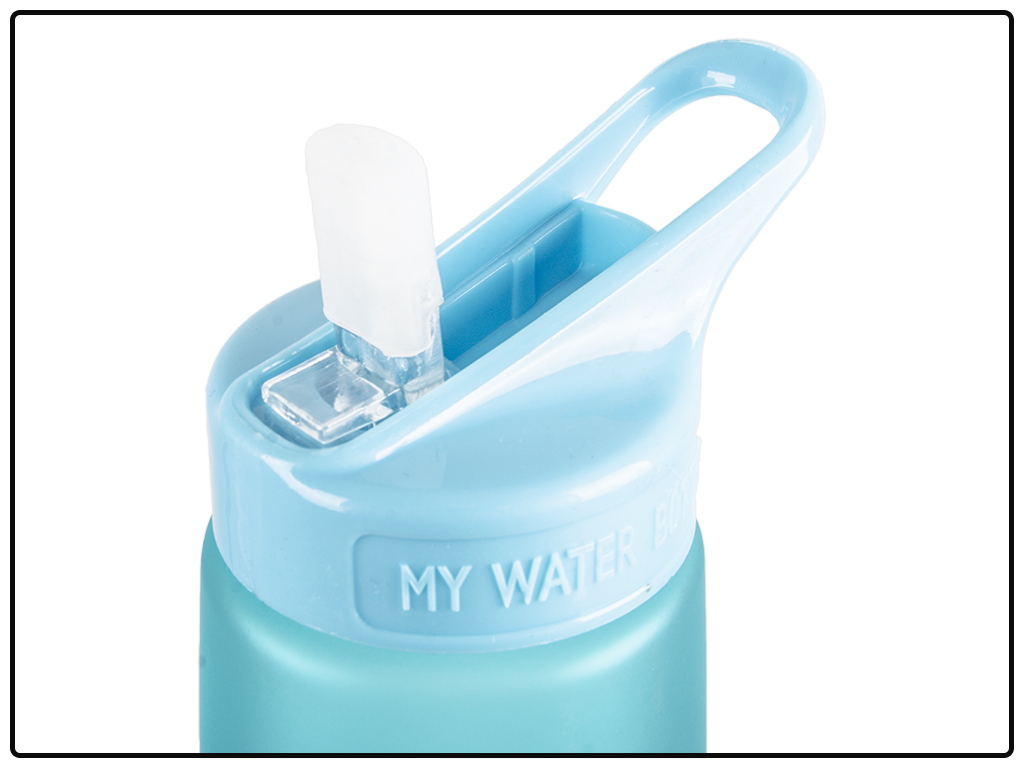 Размер: 9,5х7,7х24см, диаметр емкости 7,7см, длина с петлей 9,5см, высота с опущенным поильником 24см. Объем: 800мл. Материал: пластмасса, силикон (уплотнитель и насадка на поильник). Упаковка: пакет. Крышка с винтовой резьбой, оборудована пластиковой петлей, поильник складывается нажатием. Трубочка съемная пластиковая. Поильник пластиковый со съемной силиконовой насадкой. На дно бутылки нанесен знак - бокал с вилкой (означает, что материал может соприкасаться с пищевыми продуктами). На бутылку-поилку на несена мерная шкала. Поверхность емкости с матовым покрытием. Трубочка касается дна.