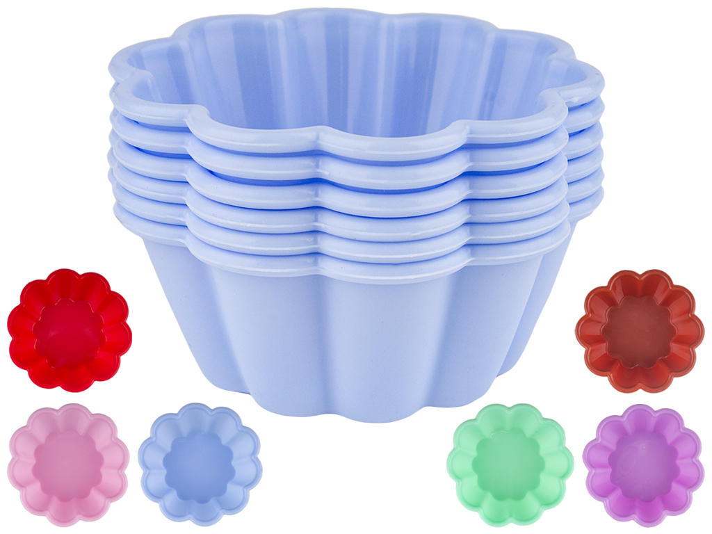 Размер формы: 7,5х7,5х3см. Количество: 6шт. Цвета ассорти: сиреневый, красный, голубой, розовый, зеленый (бледно изумрудный), коричневый (терракотовый). Формы из силикона для выпечки помогут Вам без труда испечь идеальные бисквиты. Не использовать на открытом огне, на электроплитах. Не применять острые предметы. Рекомендуемая температура, указанная на изделии, от -40 до 260 градусов.