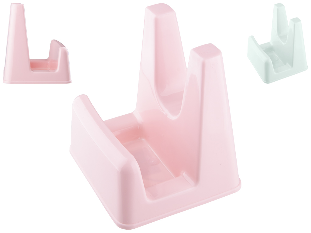 Тип подставки: под крышку. Материал: пластмасса. Размер: 13,3х11,6х13см. Толщина пластика: 2мм. Подставка имеет стандартную форму подходящую под любой тип крышек, облегчает процесс готовки, и не занимает много места на рабочей поверхности. Цвета: розовый, голубой.