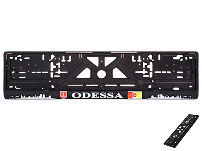 Автомобильная рамка под номер ODESSA город (Украина) обеспечит надежную фиксацию номерного знака и придаст индивидуальность вашему автомобилю.