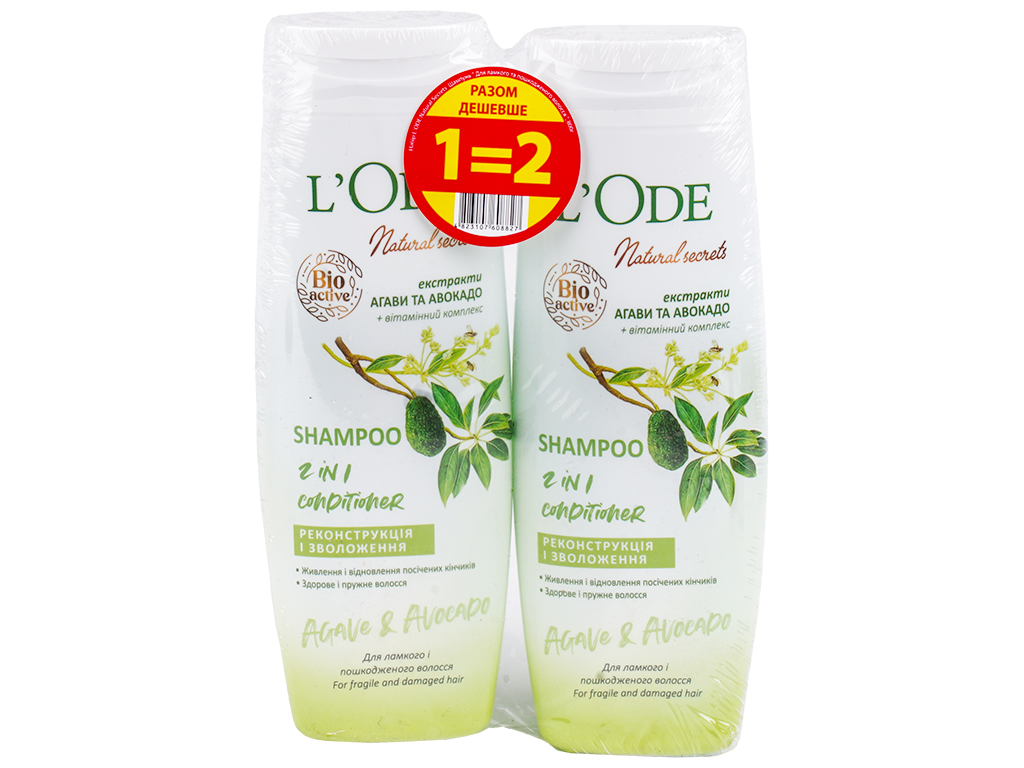 Набор Шампунь L`ODE Natural Secrets Для ломких и поврежденных волос, 400мл (цена за набор 2шт)