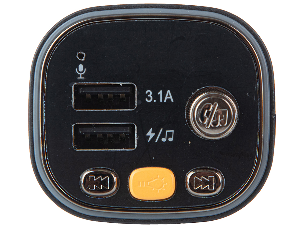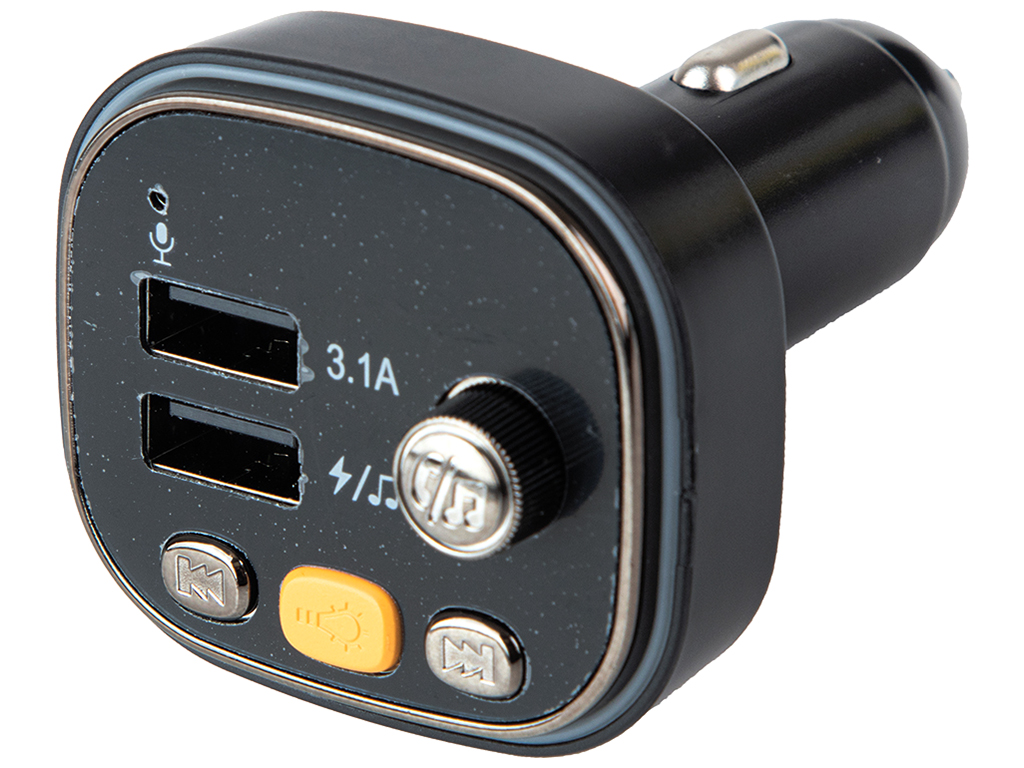 Автомобильное зарядное устройство c FM-передатчиком, который помогает отвечать на вызовы и воспроизводить музыку с вашего телефона, USB-накопителя.