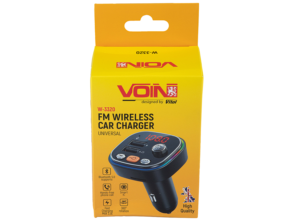 Модулятор FM, Voin W-3320, 12-24V, 2 USB, 3,1A, Bluetooth 5.0, Hands-free, ambient light