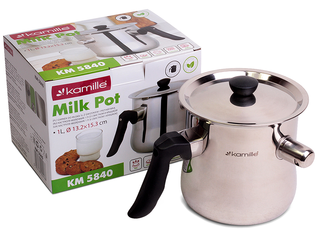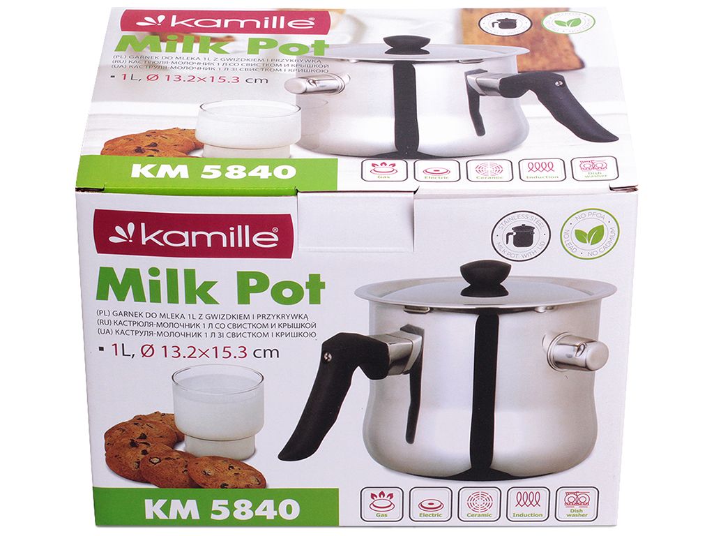 Материал: нержавеющая сталь. Материал: высококачественная нержавеющая сталь; ручка - бакелитовая. Объем: 1л. Подходит для мытья в посудомоечной машине. Подходит для всех типов плит. Упаковка: цветная картонная коробка.
