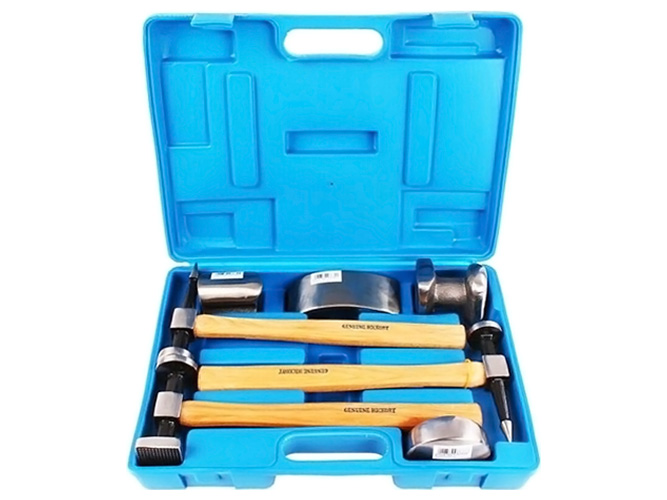 Набор специализированного инструмента, состоящего из 7 предметов и предназначен для комплексных работ, связанных с устранением вмятин и деформаций кузова автомобиля. Молотки и рихтовочные приспособления изготовлены из высококачественной инструментальной стали. Комплектация: молотки – 3шт, наковальни – 4шт, пластиковый кейс.