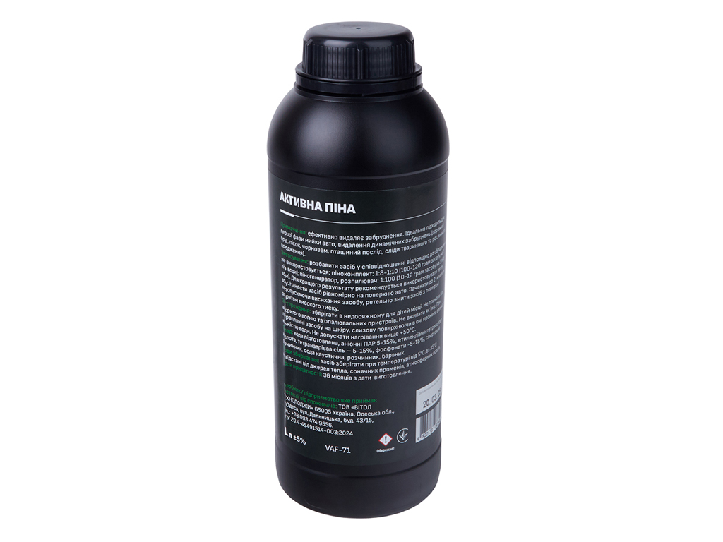 VOIN FastFoam - концентрированная активная пена с pH10, эффективно удаляющая сложные загрязнения на автомобиле. Средство образует густую пену, равномерно покрывающую поверхность, обеспечивая глубокую очистку без повреждения лакокрасочного покрытия. Пена легко смывается, не оставляя следов, подходит для автоматических и ручных мойок. Разведение варьируется от 1:8 до 1:10 в зависимости от степени загрязнения, что позволяет экономично использовать средство. Предназначена для быстрой и качественной очистки автомобиля, обеспечивая эффективный и безопасный уход. Используйте с пенокомплектом или пенообразователем для максимального эффекта.