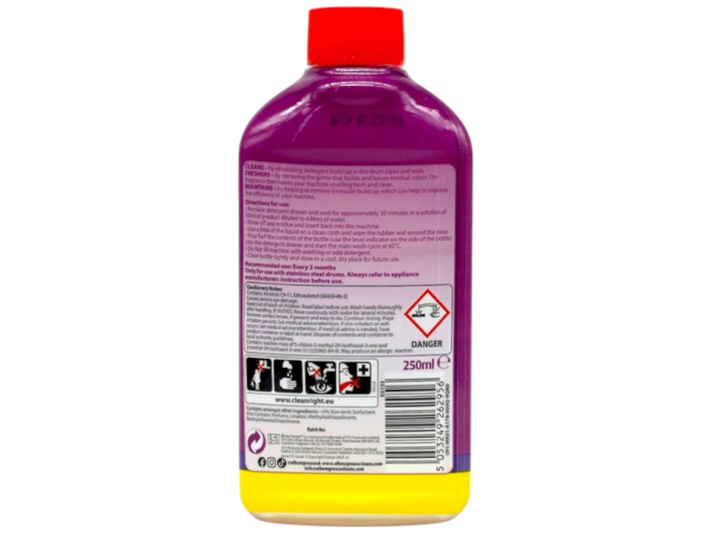 Средство для чистки стиральных машин Elbow Grease Washing Machine Cleaner – это новая, двойная концентрация в формате жидкости, разработанная для глубокой и гигиенической очистки вашей стиральной машины. Бутылка объемом 250 миллилитров рассчитана на две дозы (два цикла очистки), что делает его экономичным решением для регулярного ухода. Средство обладает эффективной чистящей силой, которая устраняет скопления остатков моющих средств в барабане, трубах и уплотнителях, а также известковый налет и грязь с внутренних частей машины, что повышает эффективность ее работы. Средство подходит для всех типов стиральных машин – как с фронтальной, так и с верхней загрузкой, что делает его универсальным для любого дома. Elbow Grease очищает, освежает и поддерживает все важные внутренние компоненты: барабан, насосы, клапаны и фильтр. Регулярное применение помогает устранить стойкие и неприятные запахи, которые могут скапливаться внутри машины, оставляя после каждого сеанса очистки освежающий ягодный аромат (Berry Burst). Средство способствует продлению срока службы стиральной машины за счет уменьшения известкового налета и поддержания плавности работы всех механических частей. Это единственный очиститель, который вам понадобится, для комплексного ухода за техникой. Продукт антибактериальный, он убивает до 99,9% бактерий в самых скрытых местах вашей стиральной машины, что важно для поддержания гигиены. Использовать средство просто: залейте одну дозу (125 мл) непосредственно в барабан пустой стиральной машины и запустите обычный цикл стирки при температуре 50°C – 65°C (горячая стирка). Рекомендуется проводить очистку каждые два месяца. Важно: средство содержит этоксилированные спирты и вызывает серьезное раздражение глаз. Избегайте прямого контакта с кожей и глазами.