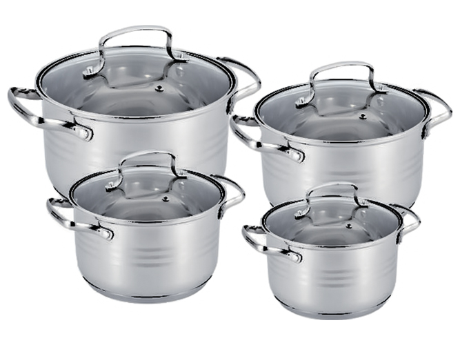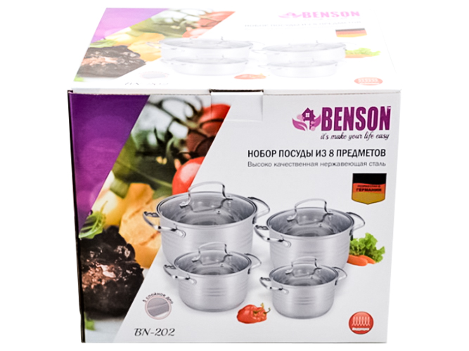 Набор кастрюль с крышкой Benson, из нержавеющей стали (цена за набор 8 предметов)