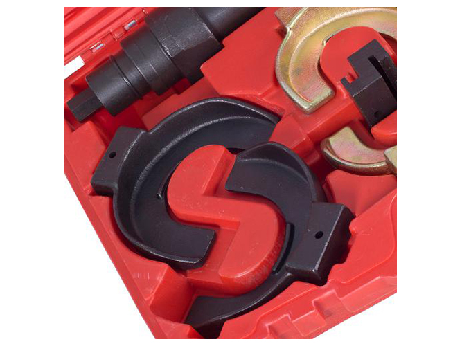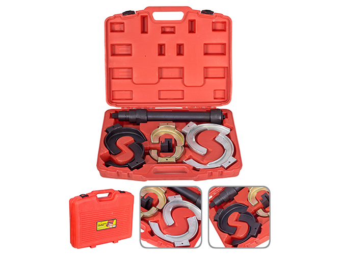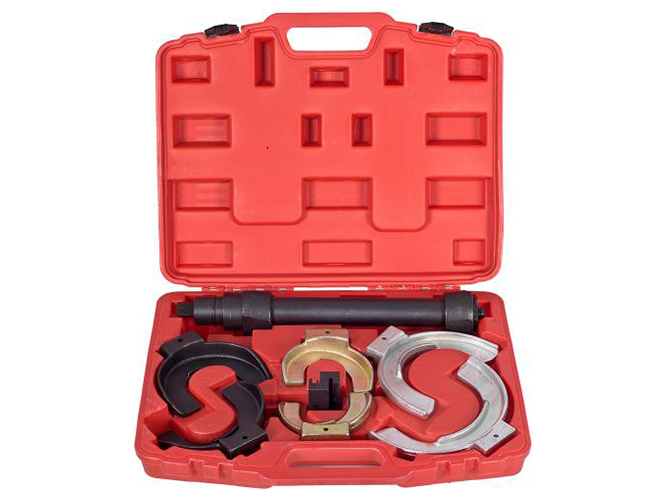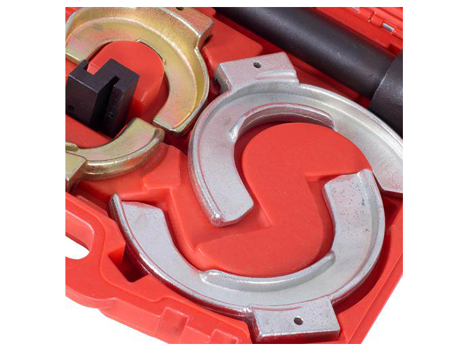Стяжка универсальная пружин Alloid С-2001 — это специализированный инструмент для безопасного демонтажа и монтажа пружин во время ремонта амортизаторов на ходовой части типа McPherson. Комплект включает в себя 8 предметов: вал сжатия (0–300 мм), три пары нажимных пластин разных размеров (65/125 мм, 88/160 мм, 126/212 мм) и адаптер для конических пружин. Изготовлен из высокопрочной закаленной стали, что обеспечивает надежность и долговечность. Надежные захваты предотвращают смещение во время работы. Укомплектован ударопрочным кейсом с организацией для каждого элемента. Идеально подходит для профессионального автосервиса и самостоятельного ремонта.