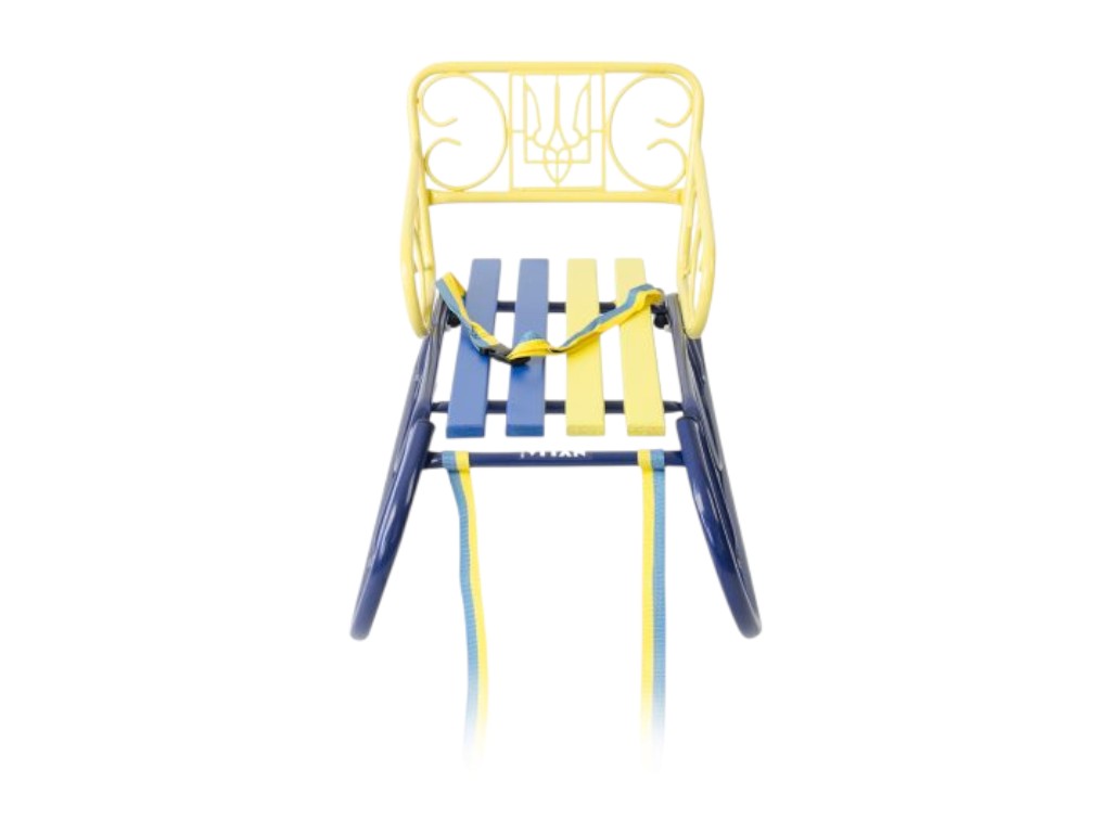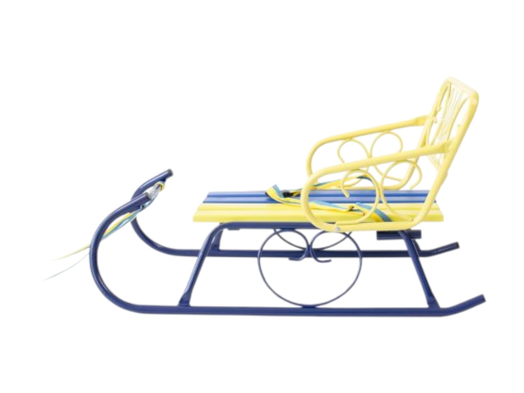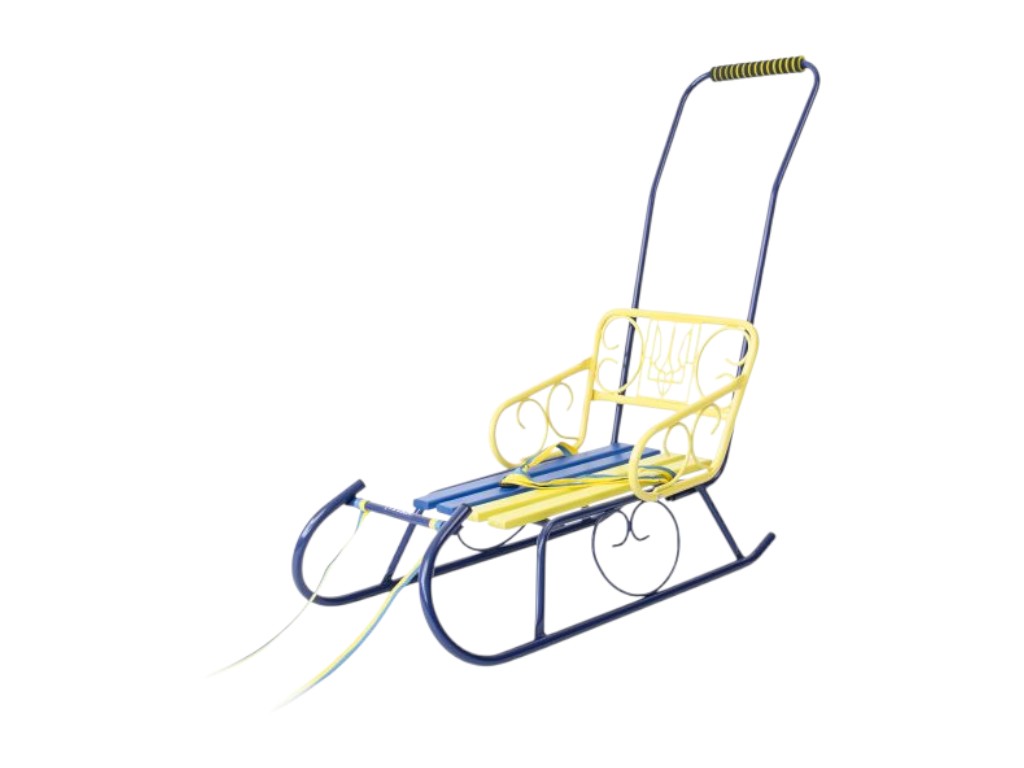 Санки детские со спинкой Смерека Патриот синие-желтые, ручка, цветное сиденье, Vitan