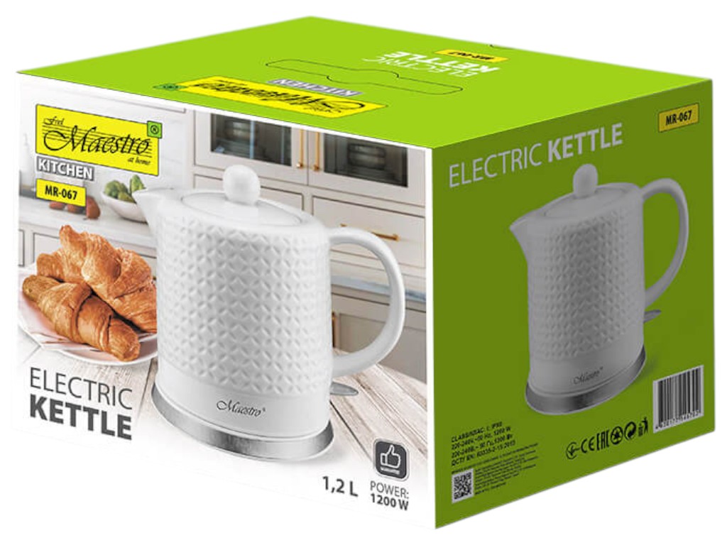 Чайник электрический Maestro, 1200Вт, индикатор воды, автовыключатель, керамика, 1,2л, цвет белый