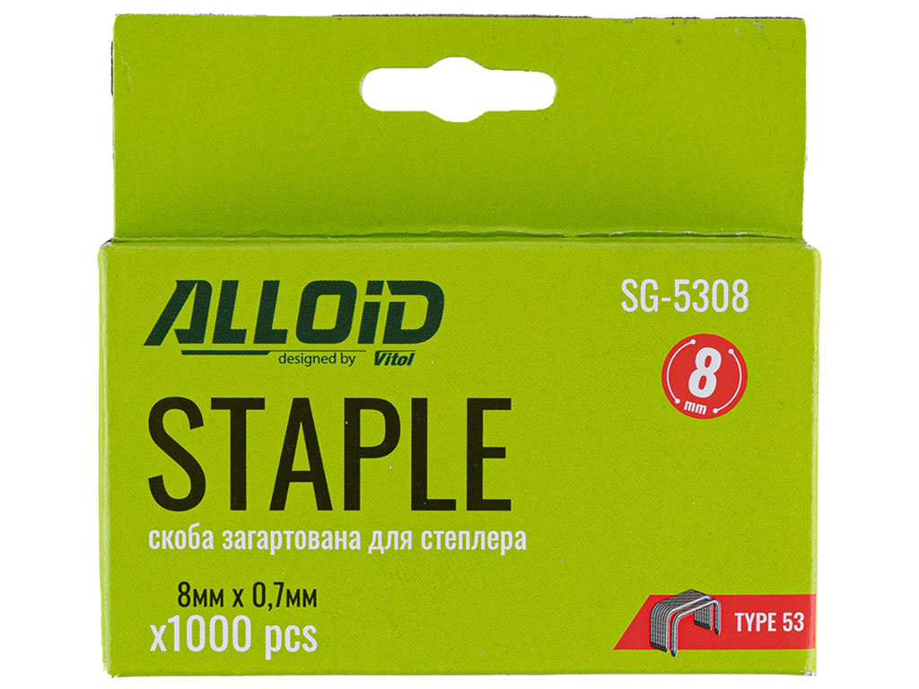 Скобы закаленные Alloid для степлера, тип 53, 8×0,7мм, 1000шт
