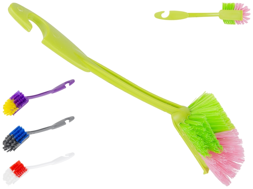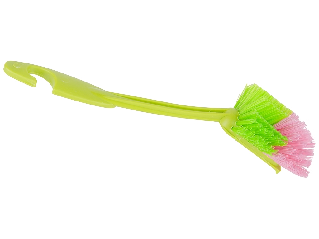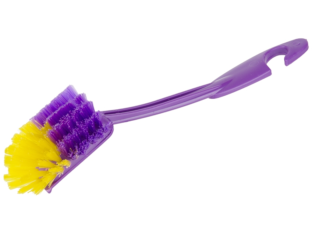 Размер щетки: 28х6,5х7см. Длина щетины 3см. Материал: пластик. Цвета: серый, белый, салатовый, фиолетовый. Щетка предназначена для мытья посуды. Имеет жесткую щетину шириной 6,5см, которая не царапает поверхность посуды, быстро вспенивает моющее средство, тем самым сокращая его расход. Длинная ручка позволяет снизить вероятность контакта с моющими средствами. Позволяет безопасно удалить грязь, налет, следы от насекомых и другие загрязнения. Без коробки.