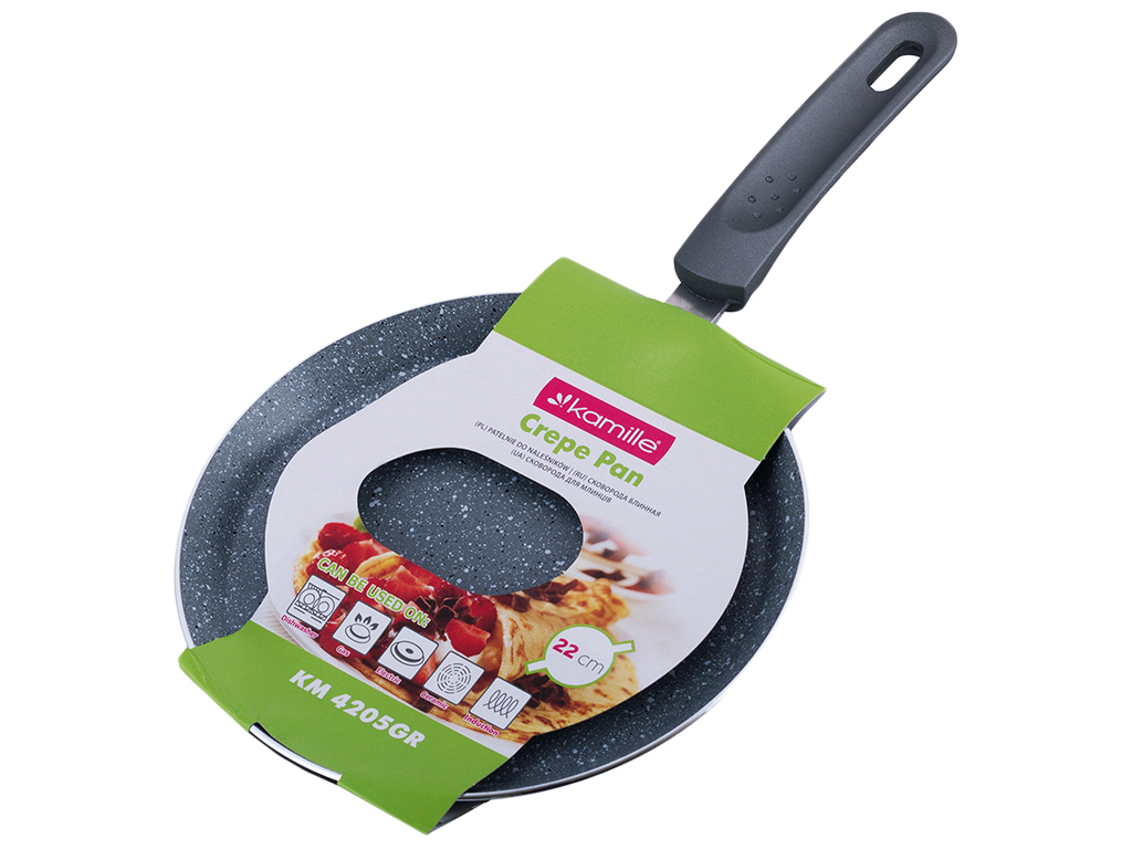 Сковорода для блинов алюминиевая Kamille с мраморным покрытием, индукционное дно D22см