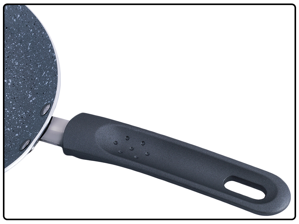Тип сковороды: блинная. Форма: круглая. Диаметр: 22см. Высота 2см. Длина ручки: 15,5см. Материал: алюминий. Материал ручки: бакелит с покрытием "soft-touch". Антипригарное покрытие: мраморное. Цвет: серый гранит. Тип плиты: электрическая, стеклокерамическая, индукционная, газовая. Подходит для мытья в посудомоечной машине. Упаковка: картонная накладка, пэ-пакет.