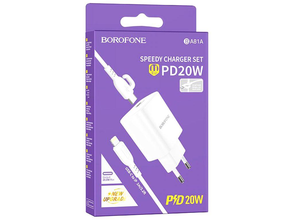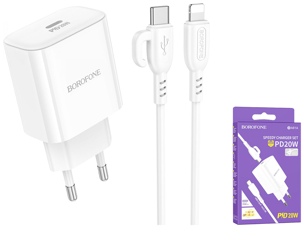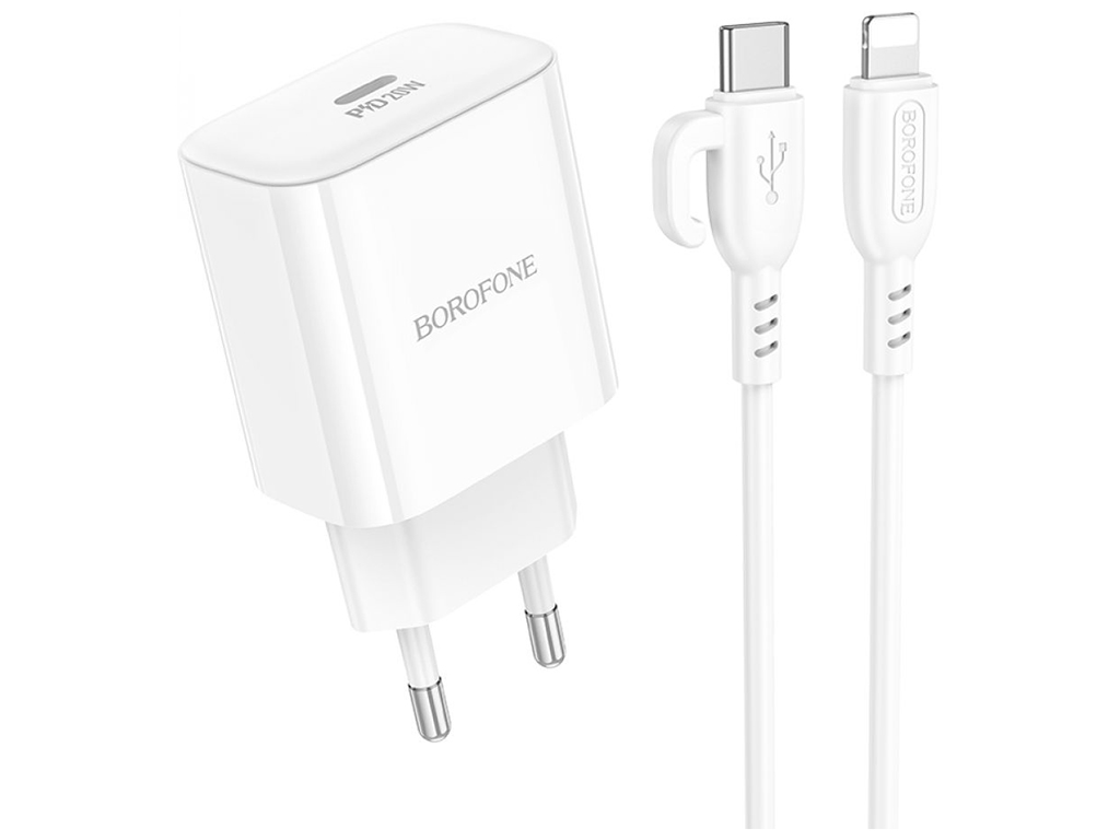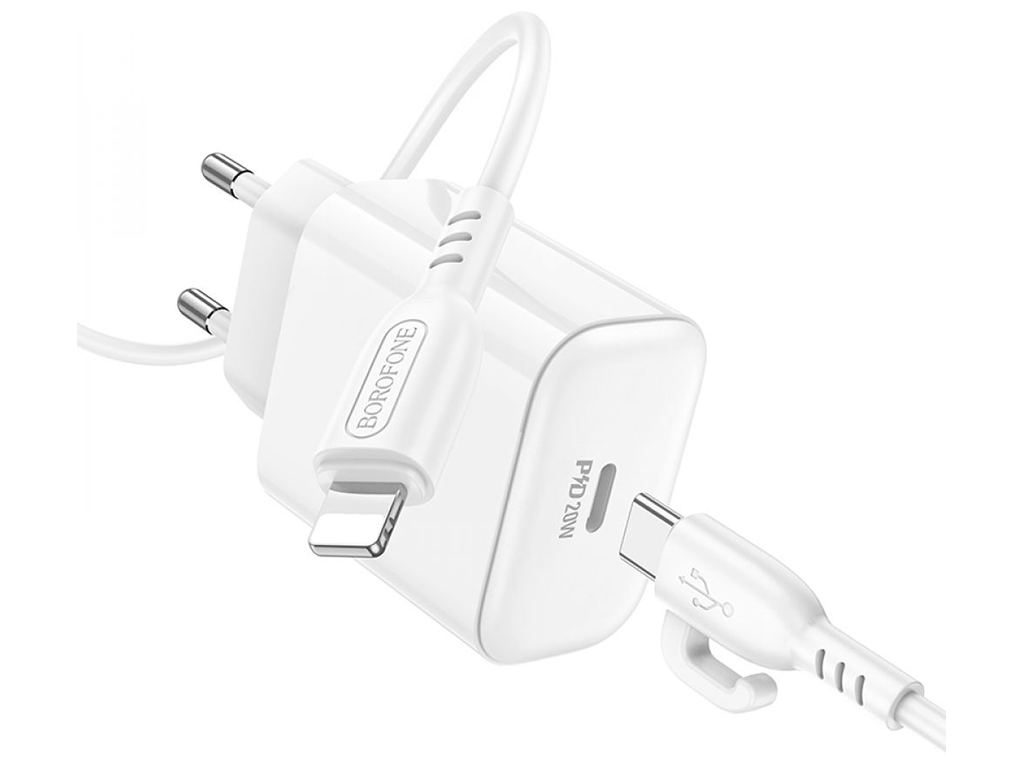 Сетевое Зарядное Устройство Borofone BA81A 1 Type-C PD20W+Type-C to Lightning, Цвет Белый