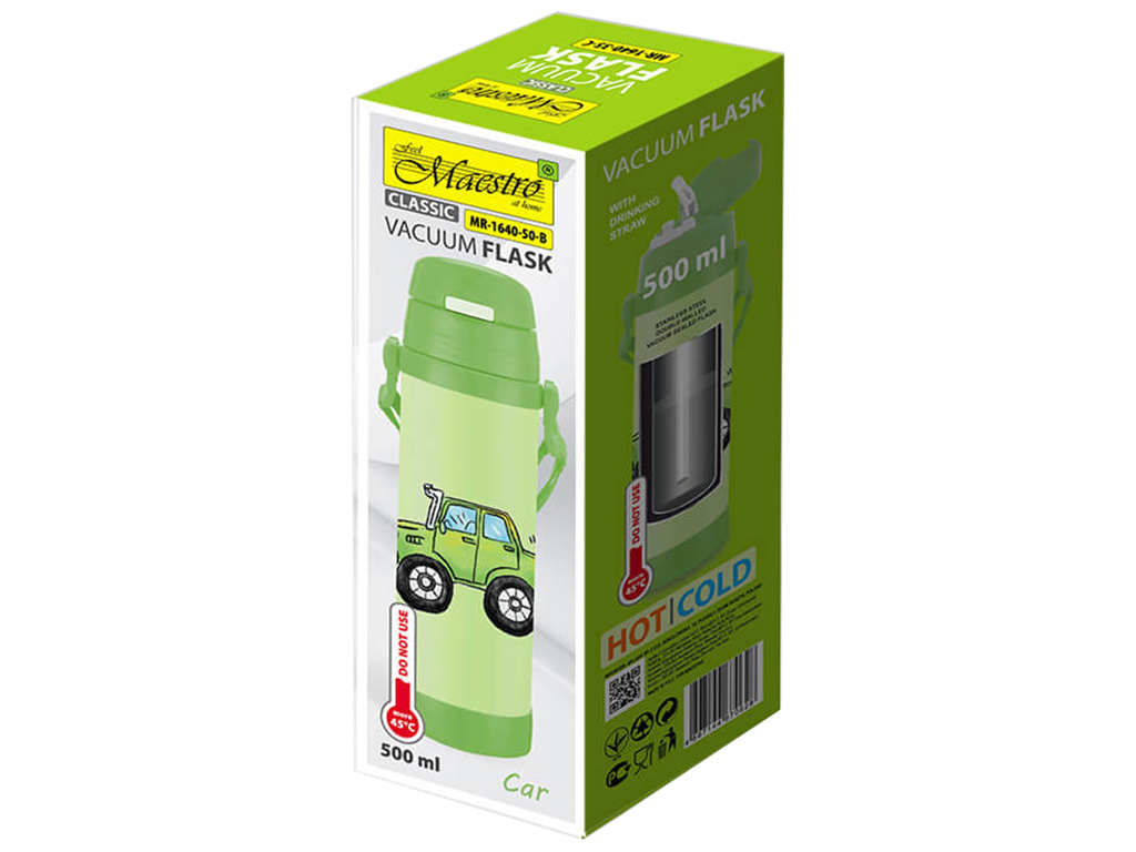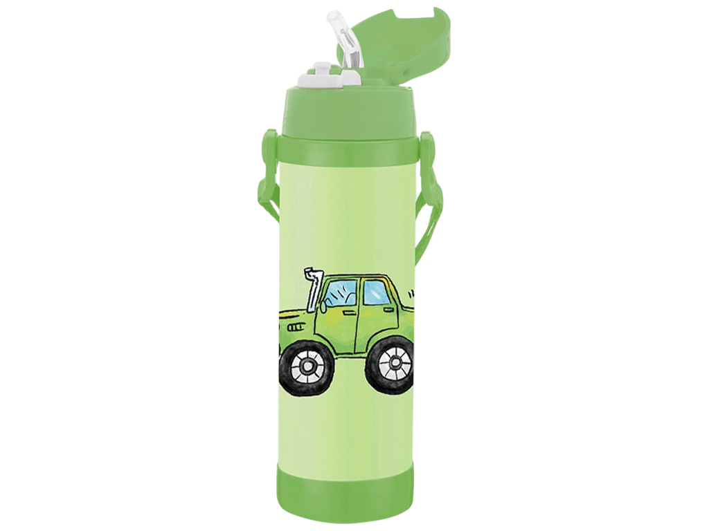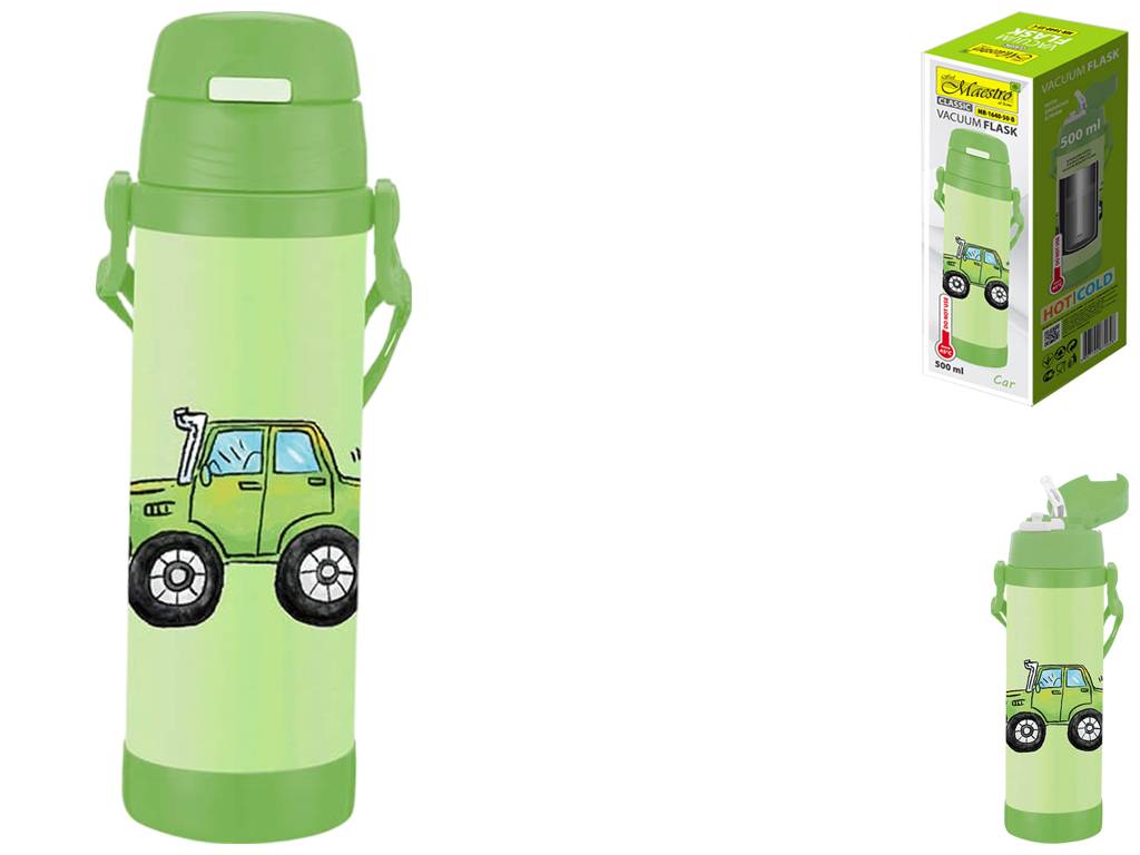 Термос детский Maestro Car, 500мл, силиконовая трубочка, нержавеющая сталь, цвет зеленый