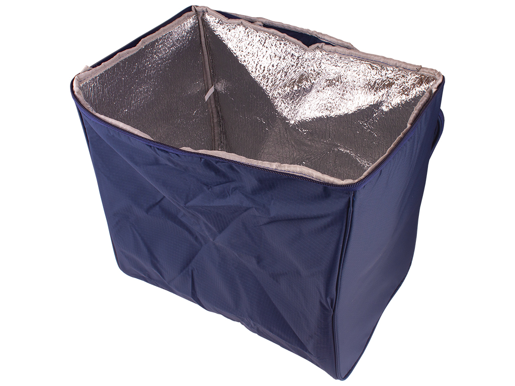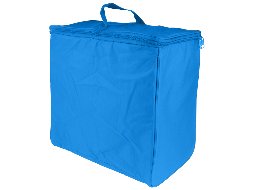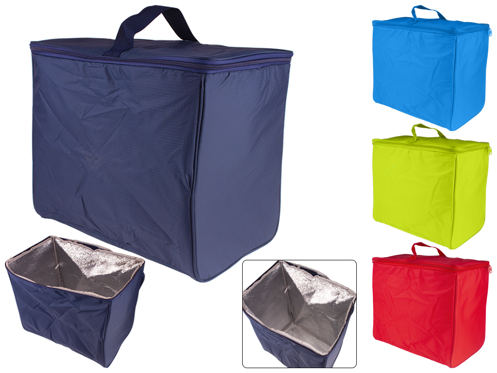 Размер: 37х23х36см. Расцветка ассорти: голубой, синий, красный, салатовый. Сверху расположена ручка для переноски в руке. Отделение закрывается на молнию с двумя бегунками. Материал: полиэстер, алюминиевая фольга. Компактно складывается. Легкий материал. Защитит напитки и закуски для обеда или пикника в жаркую погоду. Термоизоляционный материал из алюминиевой фольги поможет сохранить оптимальную температуру содержимого контейнера в течение долгого времени. Поставляется в пакете.