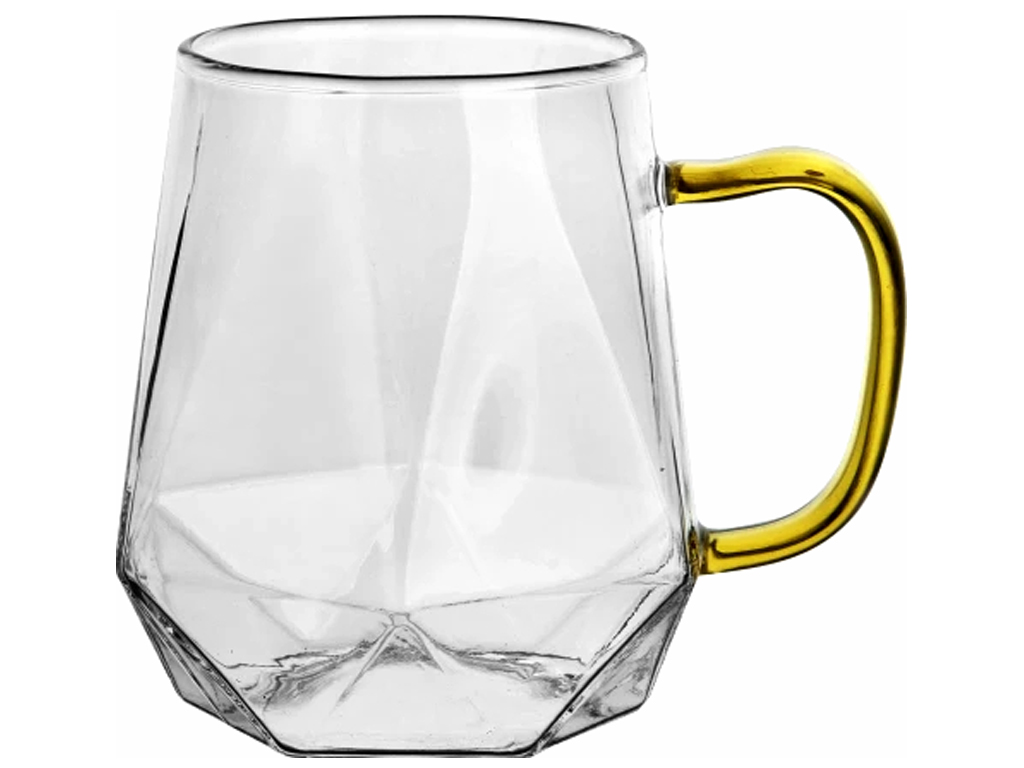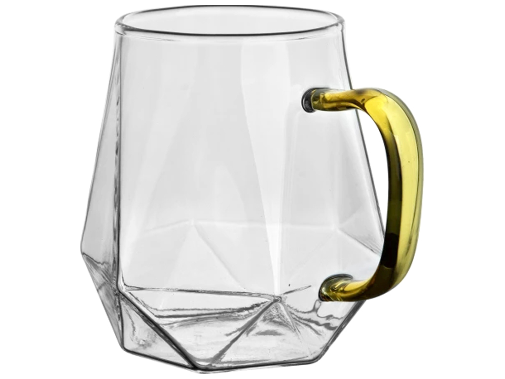 Чашка изящной бриллиантовой формы с золотистой ручкой и прозрачной, гладкой поверхностью - воплощение элегантности и изыска. Её изысканный дизайн приковывает взгляд, подчеркивая утонченный вкус и чувство стиля, делая каждое утро или вечер чаепития особенным и неповторимым.  Нельзя использовать в микроволновой печи.