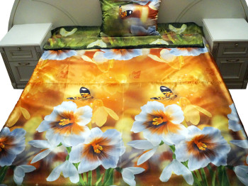 Комплект постельного белья. атлас полуторный "Летний луг" на зеленом 1 наволочка 50x70см