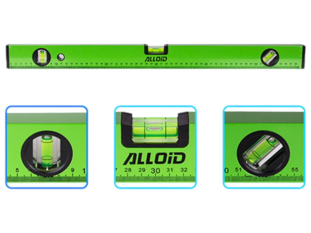 Точна розмітка та контроль положення конструкцій забезпечуються трьома капсулами, відкаліброваними під кутами 0°, 90° та 45°. Корпус з анодованого алюмінію з ребрами твердості стійкий до деформацій, а міліметрова шкала нанесена по всій довжині для зручності вимірювань. Бічні та верхні вікна дозволяють зчитувати показання в будь-якому робочому положенні.