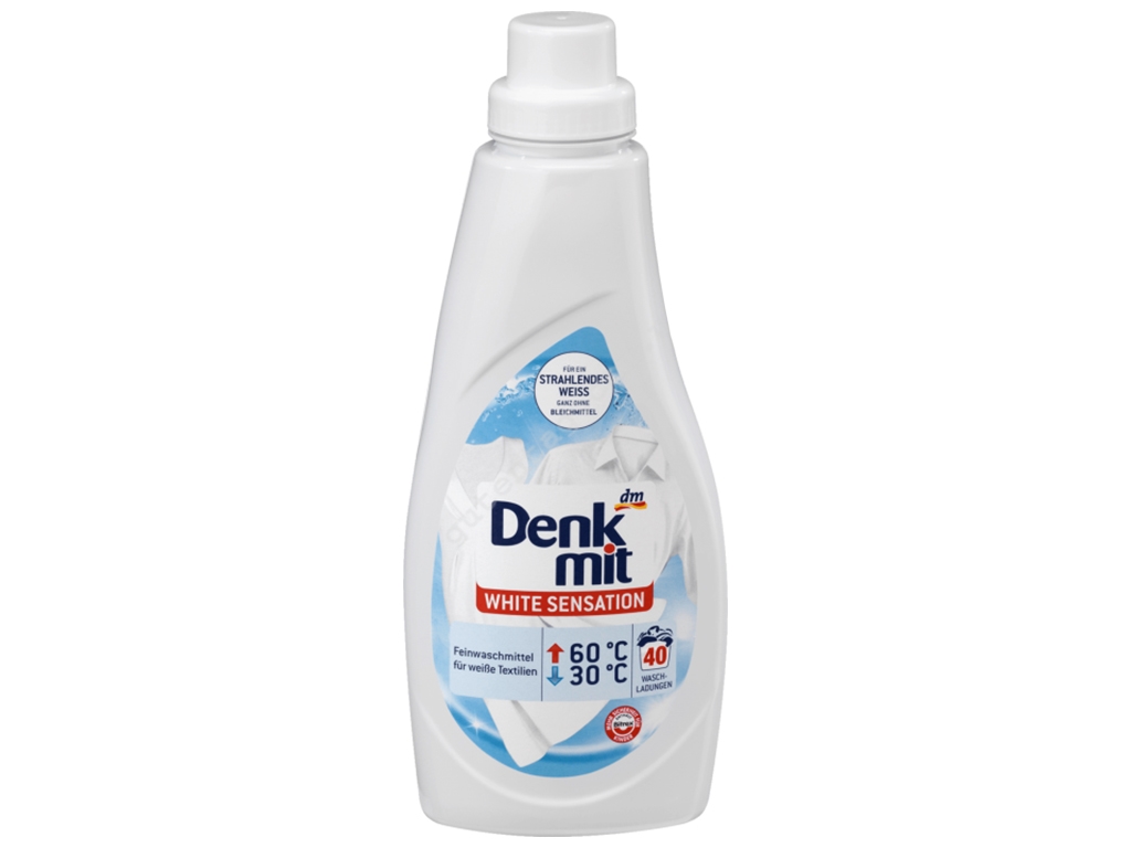Гель для прання Denkmit White Sensation з особливою формулою містить спеціальний компонент, що перешкоджає перенесенню барвників при пранні. Оптичні відбілювачі, що візуально відновлюють білизну при кожному пранні, не дозволяють білим речам мати сірий відтінок. Підходить для догляду за різними типами делікатних білих тканин, таких як бавовна, шерсть, шовк та синтетика. Об'єм: 1л (на 40 прань).