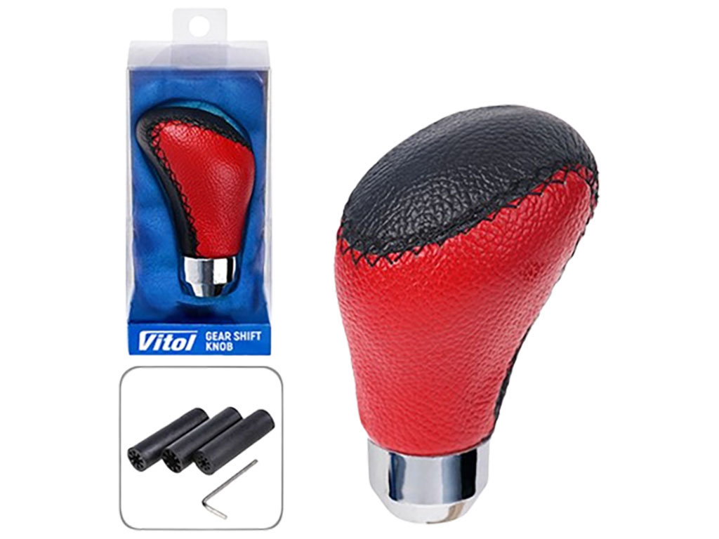 Ручка перемикання передач Vitol F 250113 (AX-J2339) виготовлена з якісної штучної шкіри у чорно-червоному кольорі. Має ергономічну форму, приємну на дотик поверхню та сучасний дизайн. Універсальна система кріплення з втулками й гвинтами дозволяє легко встановити ручку на більшість моделей авто. Постачається в коробці. Сумісна з механічними КПП. Призначена для заміни штатної ручки, покращує зовнішній вигляд салону та забезпечує зручність під час перемикання.