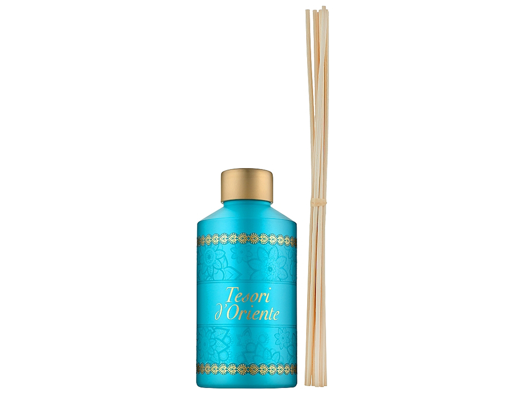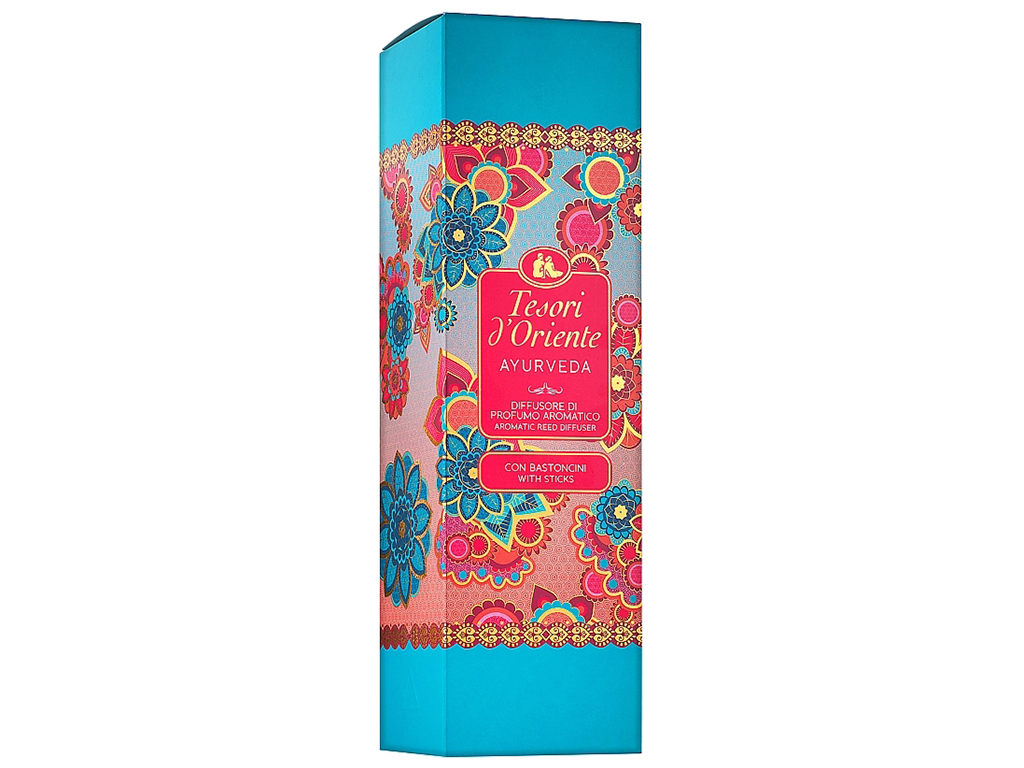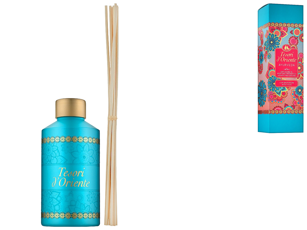 Ароматичний дифузор Tesori d'Oriente Аюрведа має дивовижний аромат, який надовго створить приємну атмосферу у вашому будинку, офісі чи в будь-якому закладі. Близько 8 тижнів випромінює чудовий аромат, наповнений багатогранними відтінками спецій і бадьорливою свіжістю цитрусових. Композиція Ayurveda складається з унікальних ефірних олій. Верхні ноти притягують підбадьорливою свіжістю бергамота та лимона із солодкими відтінками апельсина. Серце полонить яскравими акордами спецій та перцю, які доповнюють ніжні квіткові ноти іланг-ілангу, іриса та фіалки. База поєднує трав’янисті відтінки ветиверу, бальзамічні нюанси пачулів, деревні акорди кедра, інтригувальні ноти перуанського бальзаму та амбри. Розкішна ароматична композиція створює відчуття затишку та комфорту.
