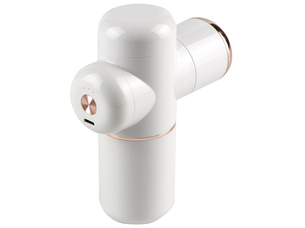 Корпус пристрою надійно зібраний, виготовлений з міцної комбінації ABS пластику і полікарбонату. Його конструкцією передбачена можливість простої зміни основної кулястої насадки на одну з чотирьох додаткових для досягнення найбільшого ефекту під час масажу певних ділянок тіла. Масажер оснащений LED індикаторами і функціональною кнопкою для ввімкнення і налаштування інтенсивності в 1 з 4 режимів роботи. Здійснення ритмічних поступальних рухів здійснюється сучасним електродвигуном потужністю 40W. Джерелом живлення для нього слугує вбудований акумулятор ємністю 3000mAh. Процес його зарядки через роз'єм Type-C із силою струму 2A при напрузі 5V не займе більше 3 годин. Масажер комплектується інструкцією, кабелем Type-C для зарядки і 4 насадками. Вид акумулятора: Незнімний;