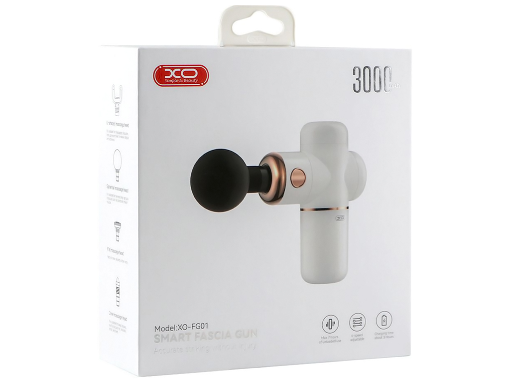 Ударний масажер XO FG01 стане ідеальним вибором для тих, хто цінує своє здоров'я і хоче насолоджуватися комфортним і ефективним масажем у будь-який час і в будь-якому місці. Він допоможе легко і без заподіяння шкоди розслабити м'язи, поліпшити циркуляцію крові і зняти напругу навіть глибоких сполучних тканин. Аксесуар виконаний в елегантному дизайні зі стильними вставками, які лаконічно поєднуються з основним білим кольором. Завдяки компактним розмірам і невеликій вазі, його зі зручністю можна брати з собою будь-куди, наприклад, у поїздки або в тренажерний зал. Його тиха робота і практична форма з ергономічним руків'ям внесуть додатковий комфорт у повсякденну експлуатацію.