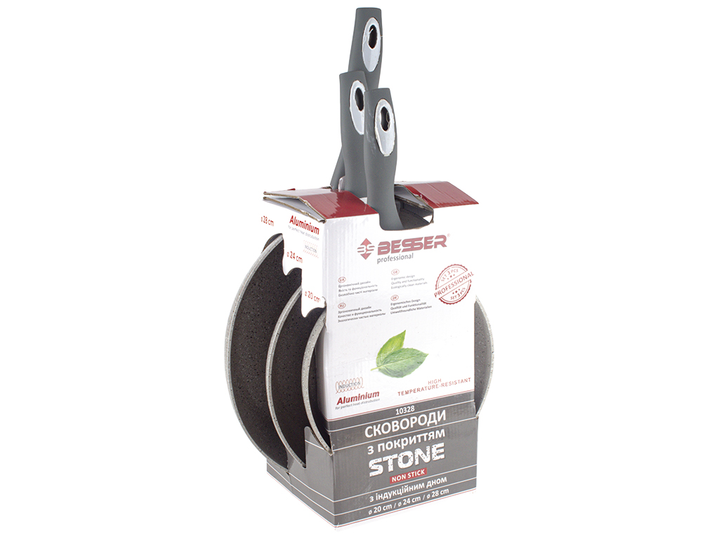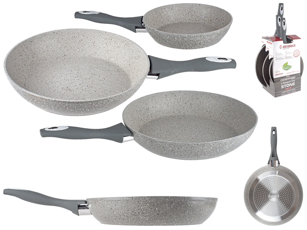 Набір сковорідок литих Besser з покрит. "Stone" інд. дно, без кришки D20/24/28см (ціна за набір 3шт)