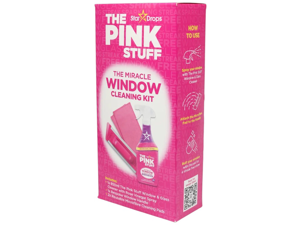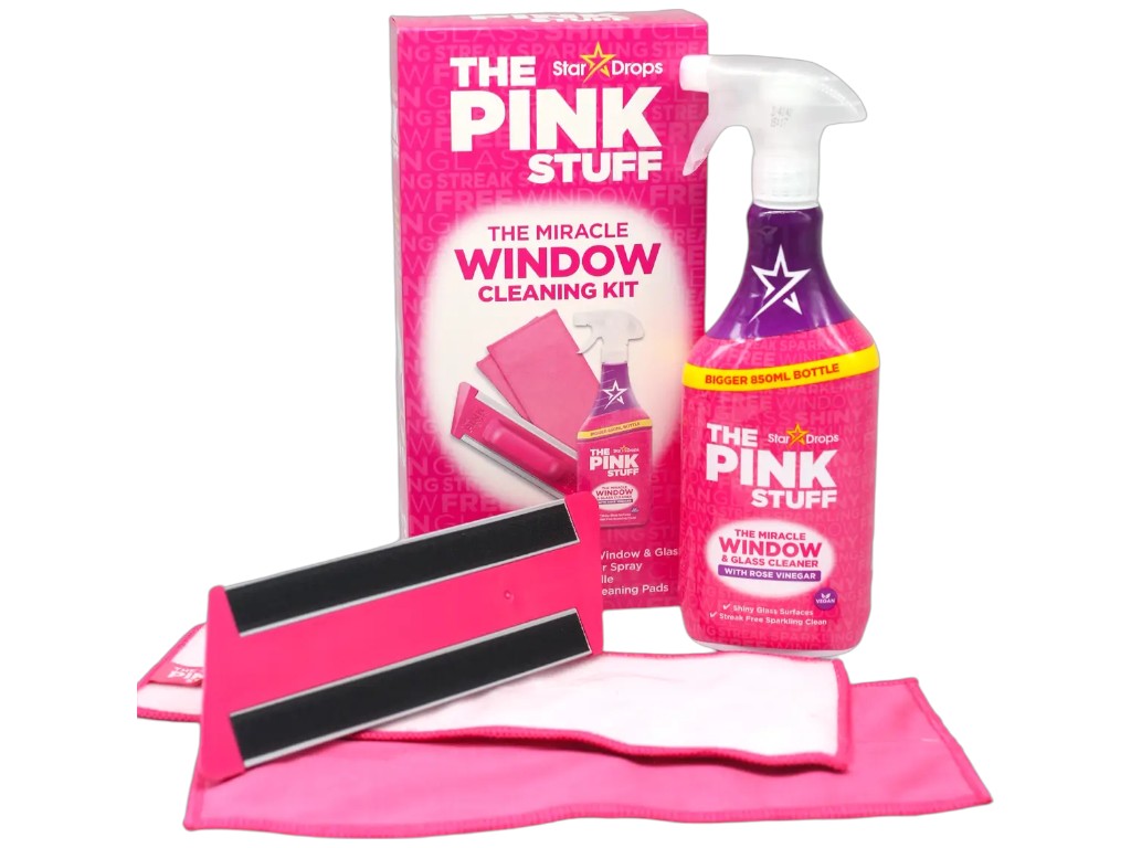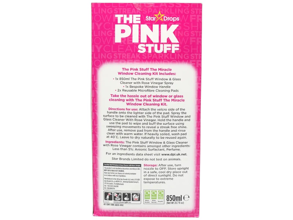 Набір для миття вікон та скла Pink Stuff, спрей, щітка та 2 серветки, 850мл