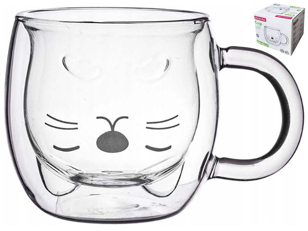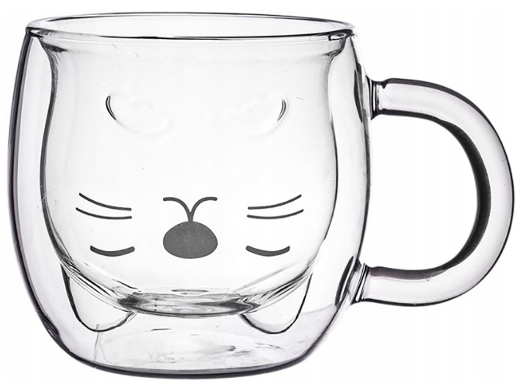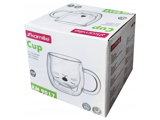 Чашка 250мл. Термостакан Kamille з подвійними стінками у формі кота поєднує в собі функціональність збереження тепла напою з унікальним дизайном, що ідеально підходить як подарунок. Виготовлений з міцного боросилікатного скла - ідеальний вибір для любителів теплих напоїв, що цінують оригінальність і функціональність. Завдяки подвійним стінкам напій довше залишається гарячим, а склянка залишається прохолодною зовні, що запобігає опікам. Унікальна форма внутрішньої частини склянки, яка після наливання рідини утворює мордочку милого кошеня, робить кожен напій феноменальним. Склянка ідеальна як подарунок, упакована в барвисте впакування, вона порадує і дітей, і дорослих.