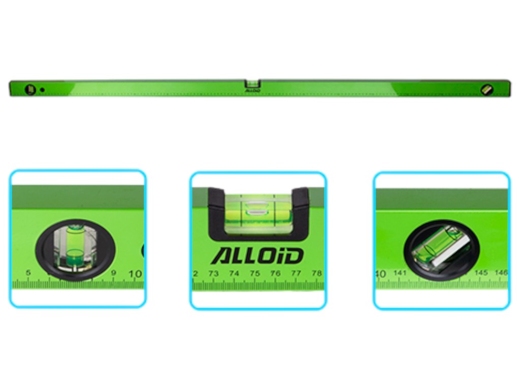 Три капсули для горизонталі, вертикалі та кута 45° забезпечують точне визначення положення поверхонь при різних роботах. Корпус з анодованого алюмінію з ребрами жорсткості стійкий до деформацій, а міліметрова шкала по всій довжині дозволяє використовувати рівень як розмічальний інструмент.