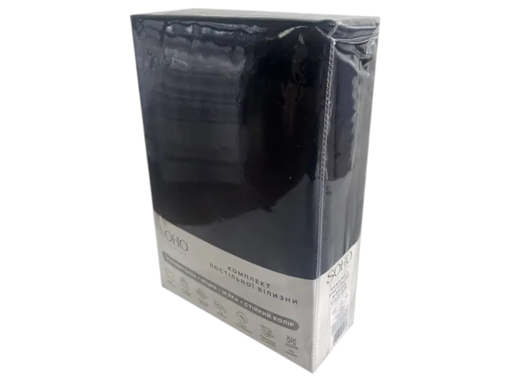 Набір складено для полуторного ліжка та містить узгоджені за розмірами елементи: підковдру, простирадло і дві наволочки. Полотно зі 100% поліестеру має гладку поверхню та рівномірну структуру, зберігає форму після прання за умови дотримання інструкцій на ярличку й швидко висихає. У комплекті SOHO розміри підібрані так, щоб підковдра охоплювала ковдру по периметру, простирадло перекривало площу матраца з запасом, а наволочки відповідали поширеному формату подушок. Під час застилання дотримуються послідовності: спочатку надягнути підковдру і вирівняти кути, потім розстелити простирадло та одягнути наволочки. Для догляду перше прання виконують окремо; надалі елементи, що застібаються, вивертають перед пранням, застосовують нейтральні рідкі засоби без відбілювачів, сушать у провітрюваному місці та складають лише після повного висихання. Зберігати комплект доцільно сухим у закритій шафі з доступом повітря. Відтінок Graphite пасує до однотонних покривал і пледів, тому набір легко поєднати з наявним текстилем спальні.