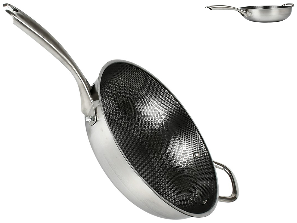 Сковорода WOK з ручкою забезпечує достатньо місця для приготування страв для всієї родини. Має антипригарне покриття. Діаметр: 32см. Матеріал: неіржавіюча сталь.