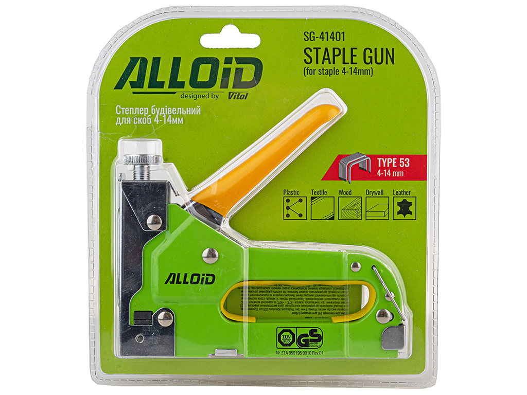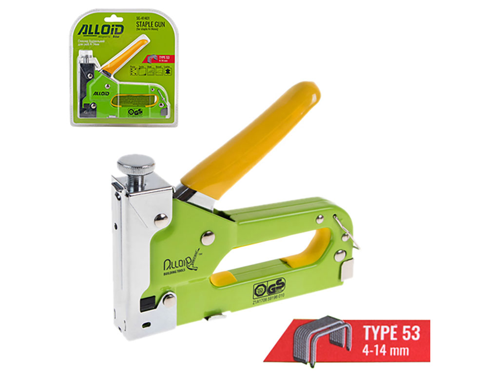 Степлер будівельний Alloid для скоб 4–14мм, з комплектом скоб 8мм, 200шт (SG-41401)