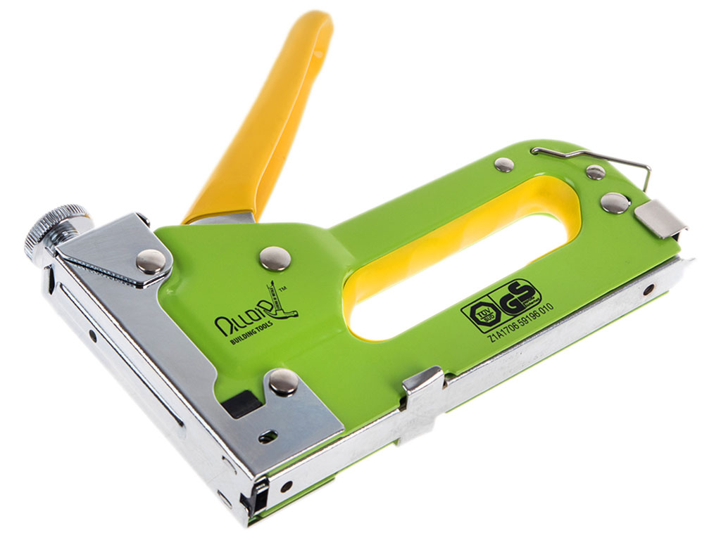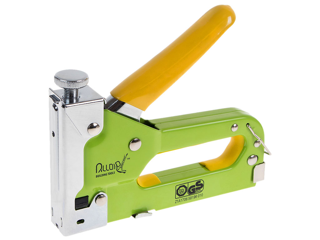 Будівельний степлер Alloid призначений для фіксації листових матеріалів (оргаліт, фанера, ДСП, ДВП, плівка, утеплювачі) до основи. Підходить для монтажних, покрівельних і оббивних робіт, оббивки меблів, укладання підлогових покриттів та встановлення утеплювачів. Оснащений ударним пружинним механізмом, металевим корпусом, регулюванням сили удару та нероз’ємним контейнером для скоб. Робочий ресурс – до 40000 ударів. Підтримує скоби висотою 4–14 мм, у комплекті – 200 скоб по 8 мм. Тип упаковки – блістер.
