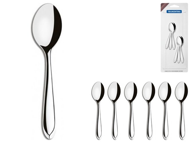 Набір чайні ложки Tramontina Laguna. Кількість предметів: 6шт. Матеріал: нержавіюча сталь AISI 430 18/0. Розмір: 12,8x3x1,4см.