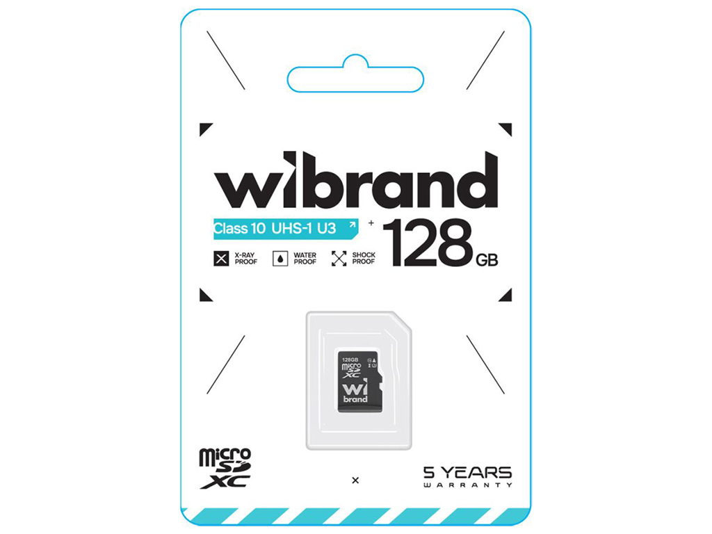 Карта пам'яті Wibrand мicroSDXC 128gb UHS-1 10 Class - це надійне і високопродуктивне рішення для зберігання даних. Вона ідеально підійде для сучасних смартфонів, планшетів, цифрових камер та інших мобільних пристроїв, що вимагають великого обсягу пам'яті та високої швидкості передачі даних. Великий об'єм: 128Gb, - дає змогу зберігати тисячі фотографій, відеороликів високої роздільної здатності, музичних файлів та інших даних. Інтерфейс UHS-1 з теоретичною максимальною швидкістю передачі даних 104мb/s. Категорія U3 - мінімальна гарантована швидкість запису даних 30мb/s. Високий рівень безпеки даних - захист від води, ударів і рентгенівського випромінювання. Сумісність із більшістю пристроїв, що підтримують карти пам'яті стандарту мicroSDXC. Виняткова надійність і тривалий термін служби, що підтверджується 5-ти річною гарантією від виробника.