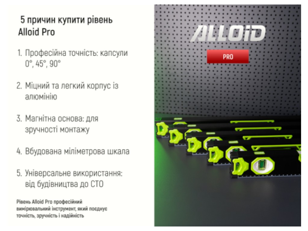 Рівень будівельний Alloid Pro, 120 см, 3 капсули, з магнітом
