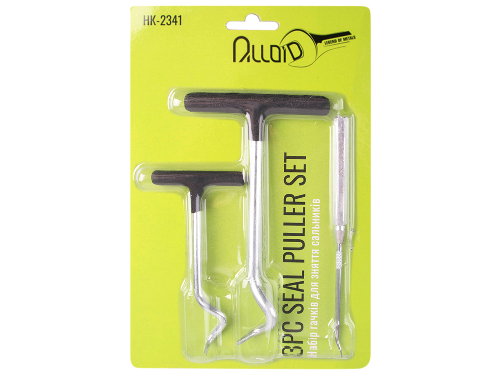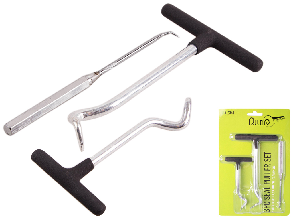 Набір гачків для зняття сальників Alloid НК-2341 відноситься до групи спеціалізованого інструменту для професійного ремонту автомобілів. Alloid НК-2341 є комплектом зі спеціальних зачепів різноманітної форми для полегшення проведення робіт з демонтажу: сальників, ущільнювальних кілець. Робочі металеві елементи виконані із конструкційної легованої сталі, а рукоятки виконані із спеціального пластику, який не боїться негативного впливу різних розчинників. Комплектація: зачіп 117мм, зачіп 150мм, зачіп 165мм.