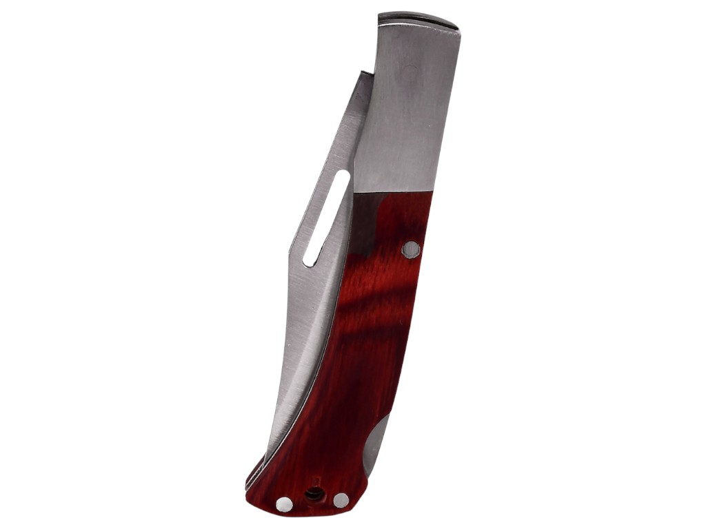 Компактний складаний ніж довжиною 16,5см — надійний супутник для чоловіка, який цінує функціональність і готовність до будь-яких ситуацій. Укорочене лезо з міцного металу справляється з основними завданнями — від нарізання до дрібного ремонту в польових умовах. Ручка з насиченим деревним відтінком зручно лягає в долоню й підкреслює характер власника. Складаний механізм робить ніж безпечним у перенесенні, а завдяки компактності він легко поміщається в кишеню або рюкзак. Міцний чохол із поліестеру забезпечує додатковий захист. Вибір для тих, хто звик бути готовим до будь-яких викликів — від риболовлі до несподіваних побутових задач.