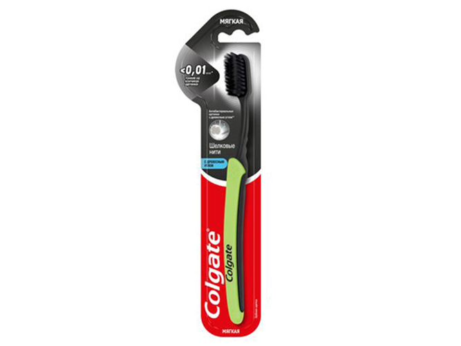 Щітка Colgate Slim Soft Charcoal створена для делікатного очищення ротової порожнини у дорослих та підлітків. Завдяки надтонкій щетині товщиною <0,01 мм з деревним вугіллям, щітки проникають у вузькі міжзубні проміжки, уздовж лінії ясен та очищають важкодоступні ділянки. Це дозволяє боротися із нальотом, залишками їжі та бактеріями без травмування ясен.