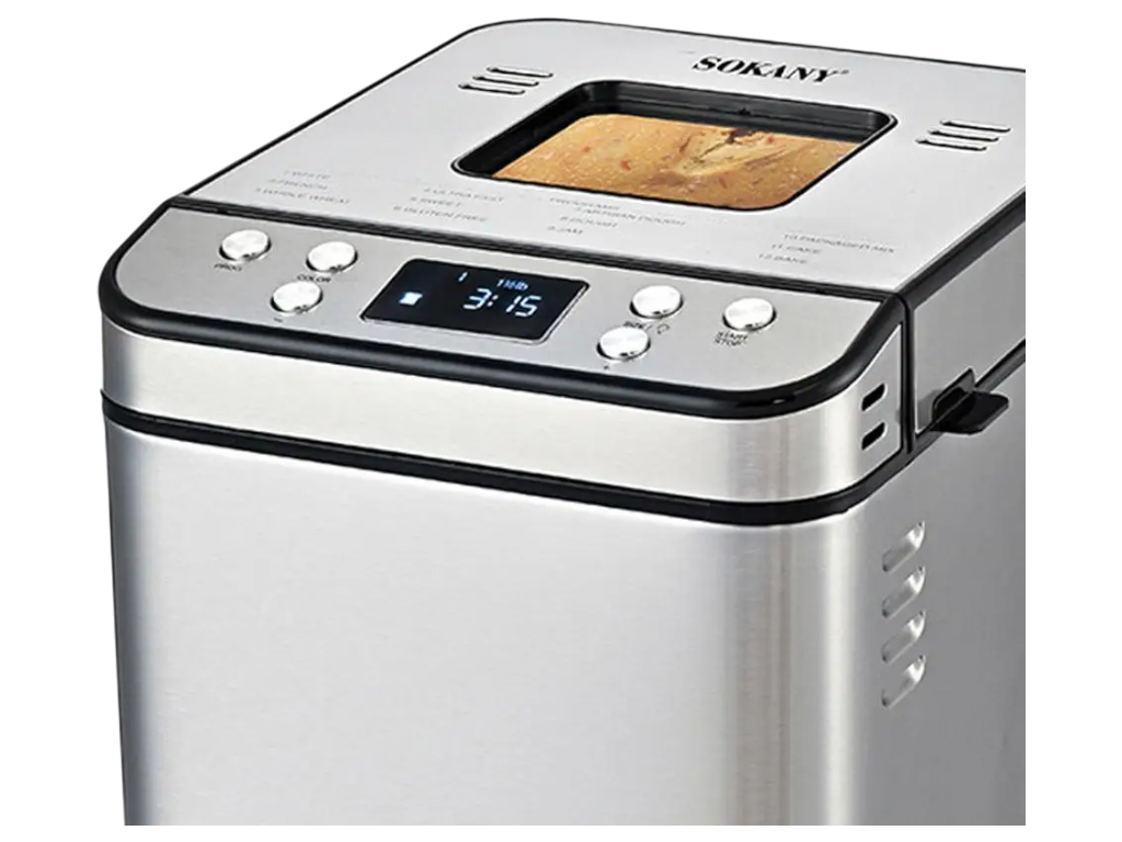 Хлібопічь Sokany, 700Вт, з таймером та регулюванням температури, нержавіюча сталь, пластик, 1кг