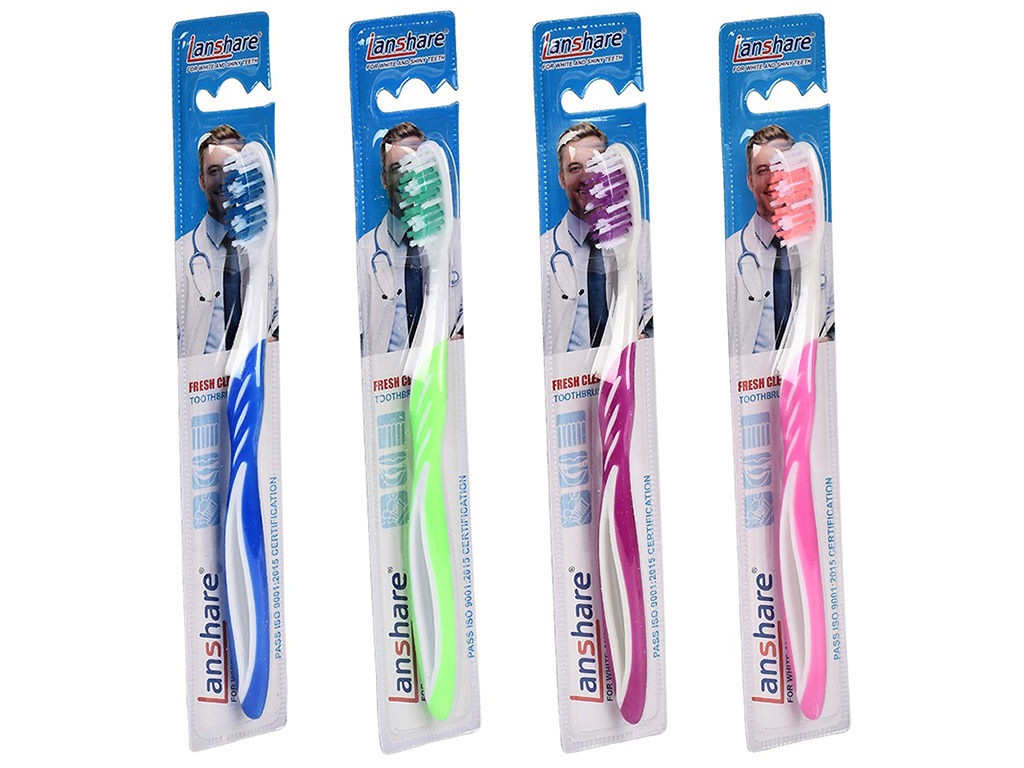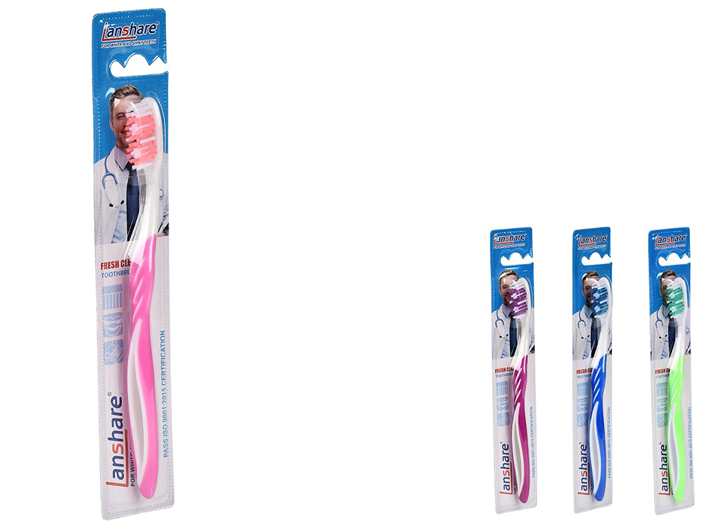 Пластикова гігієнічна зубна щітка з синтетичною щетиною в індивідуальній упаковці. Розмір зубної щітки: 18,5см. Упаковка: блістер.