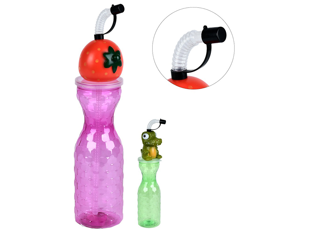 Пляшка для напоїв із трубочкою призначена для освіжаючих напоїв або води. Форма зручна для захоплення та транспортування.