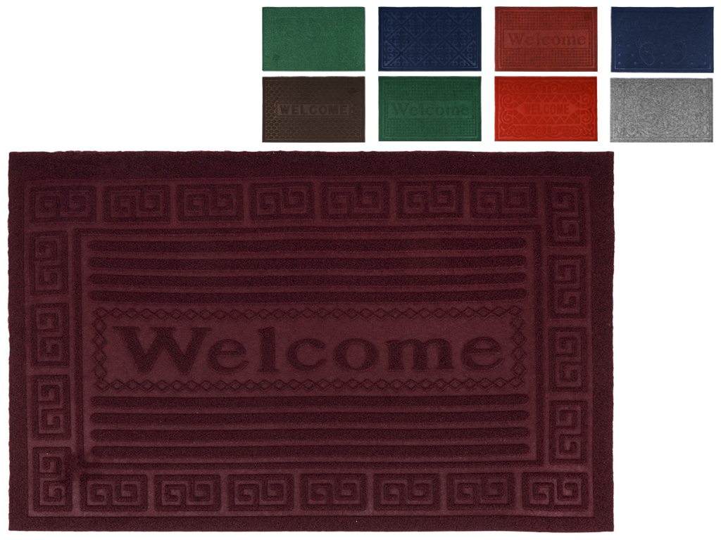Килимок придверний Wellcome. Розмір: 37x57см. Матеріал: поліестер 80%, ТПР 20%. Форма прямокутна. Забарвлення: асорті. Основа прогумована.